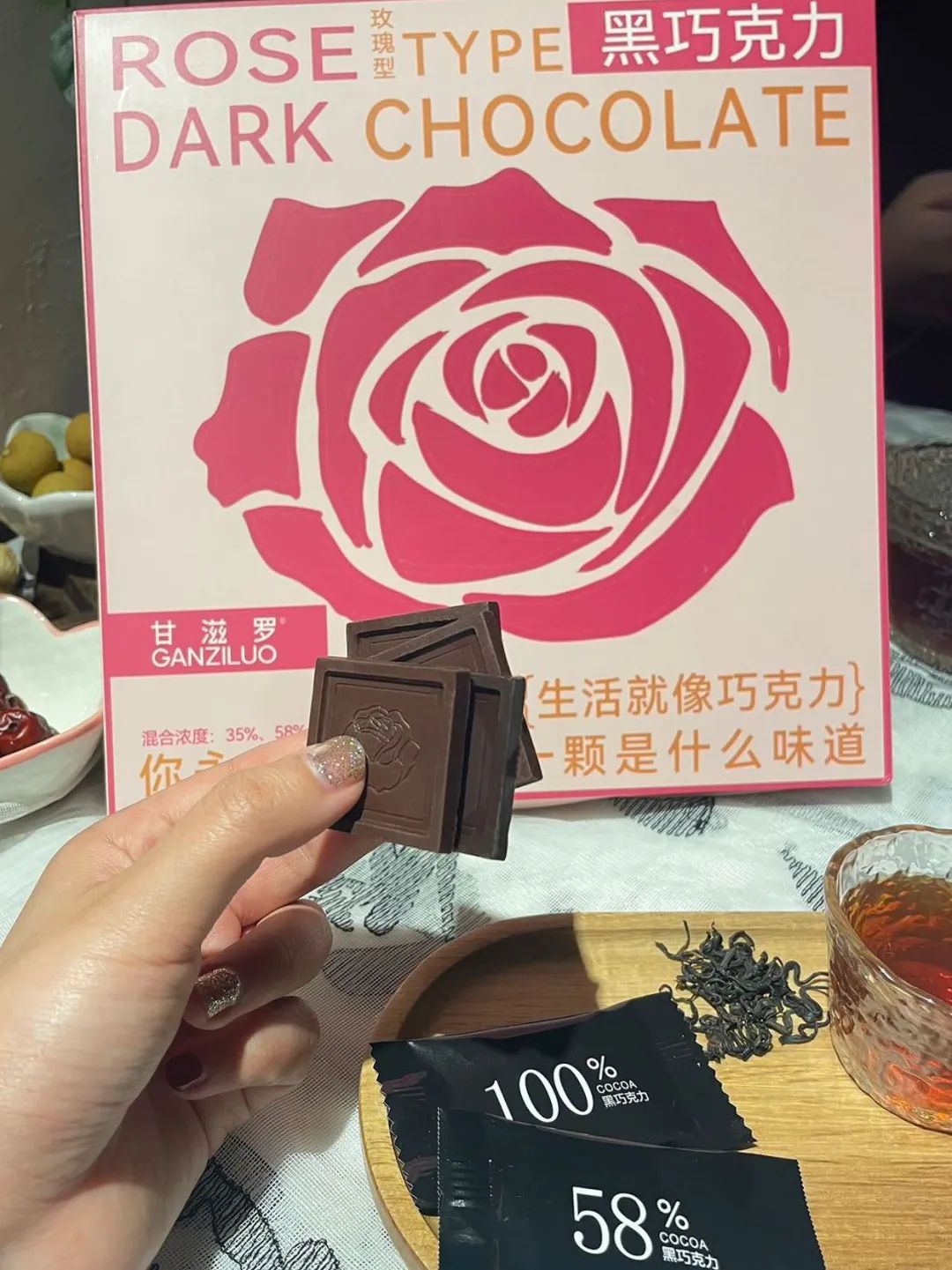 每吃一口都能体会到,巧克力带来的幸福感,不得不说甘滋罗的可可脂薄片黑巧克力yyds!